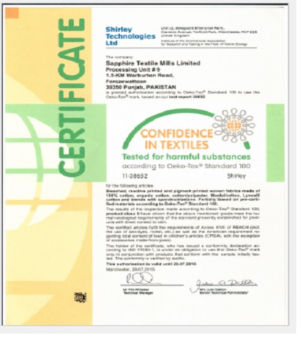 Certificate of Confidence in textiles tested for harmful substances